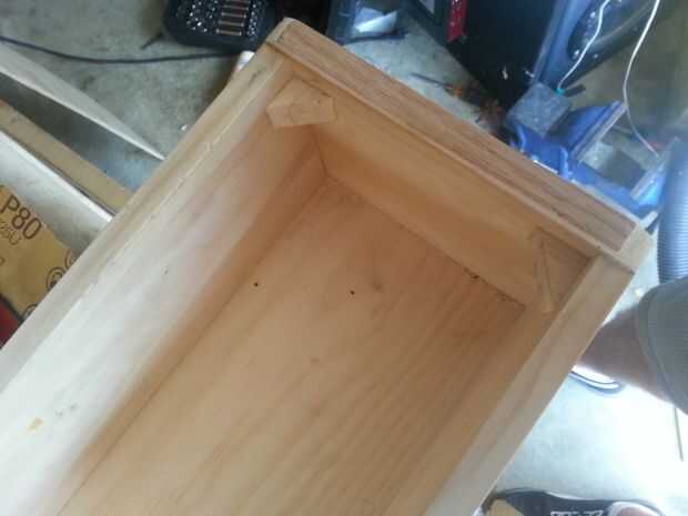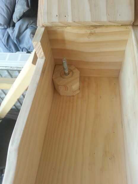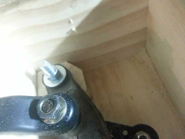 Usé dos pernos para empernar abajo el motor del limpiaparabrisas en la parte posterior de la caja. Usando los bloques de chatarra previamente cortado de madera, atornillados los en la posición correcta en el cuadro. Después de montar el motor y probar me di cuenta que necesito disparándose más del lado, y también tuve que recortar algunos de los de la tapa. Porque tenía que recortar de la tapa frontal que tenía que hacer algunas reparaciones cosméticas en la tapa.