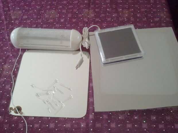 Estos son pasos de cómo hacer un modelo de Reactor de arco alimentado por energía solar.这些是如何制作一个由太阳能供电的方舟反应堆模型的步骤.Paso 1: Preparación 准备 Materiales que necesita: alambre, hierro eléctrico, pinzas, guantes, giue, LEDs, cristal acrílico, papel de lija