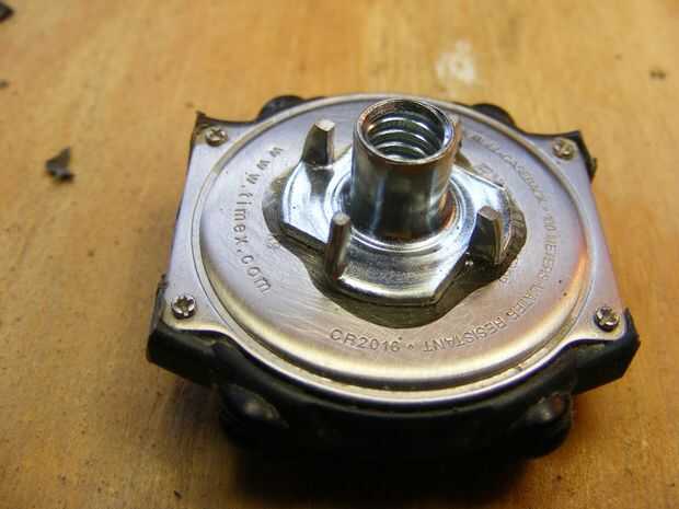 Limar las barbas t-tuerca (por seguridad) y de epoxy la parte posterior del reloj digital. Evite el epoxy sobre los tornillos de la placa trasera. Deje que la curación epoxi durante la noche. Opcionalmente cortar la venda de reloj estirones de montaje.