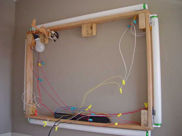 Flancos de la estructura están suficientemente amplio como para la lámpara fluorescente y los balastros. Lo suficientemente ancho, para poder cambiar las bombillas en el futuro, mientras que el marco se une a la pared.