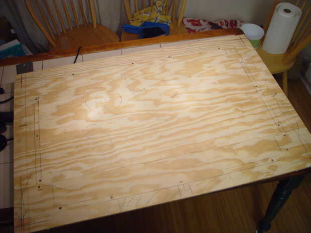 • Centrado en el marco encima de la capa y delineado por dentro y por fuera. Entonces, taladré orificios entre las líneas.