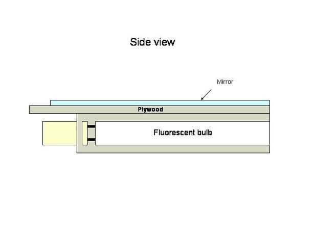 • Cortar la madera contrachapada de 2 más grande que la estructura de soporte para permitir suficiente solape cubrir los bulbos fluorescentes sin oscurecer demasiado la luz ½ '(all around).