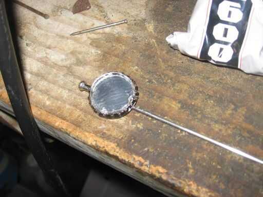 No tanto pegamento que lo gooshes todo el lugar, pero lo suficiente como para pegar firmemente el espejo allí. También añade alguna resistencia al rayo girando dentro de la tapa, por lo que el espejo se queda donde objetivo.