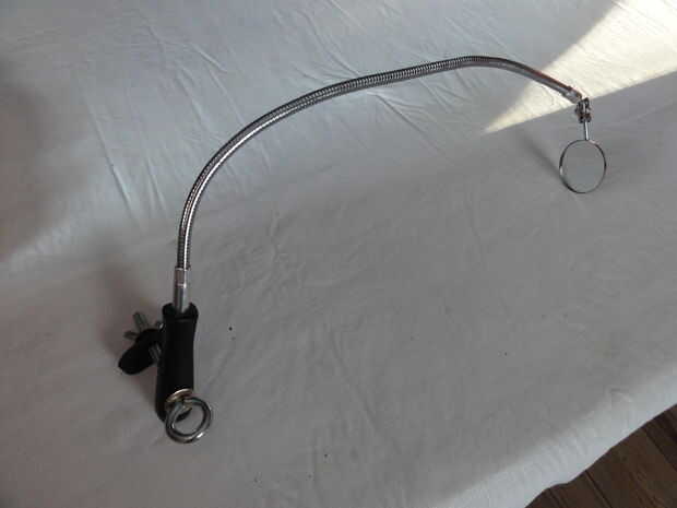 Me imaginé el montaje del soporte de apoyo para la cabeza se puso el espejo más cercano a la cabeza y ojos y también reducir la longitud requerida del brazo flexible.