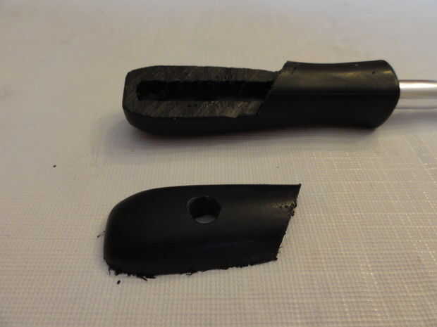 A continuación, cortar el mango a lo largo de la extremidad a la línea de corte anterior.