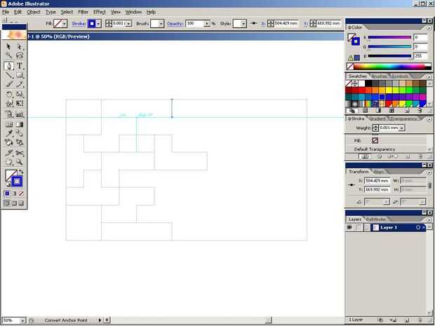 kit de arranque práctico que explica cómo preparar los planos listos para corte por láser. Diseñé el espejo para que todos las formas ranuradas dentro de otra (como con Tetris) lo que es más rápido cortar (y también más barato!), en lugar de las formas de corte individual. Entonces puede ser separados hacia fuera a imitar el juego en acción cuando se trata de fijación a la pared. Tomé la inspiración para las formas de las imágenes de Tetris que encontré en la web, y se puede utilizar cualquier número de combinaciones!