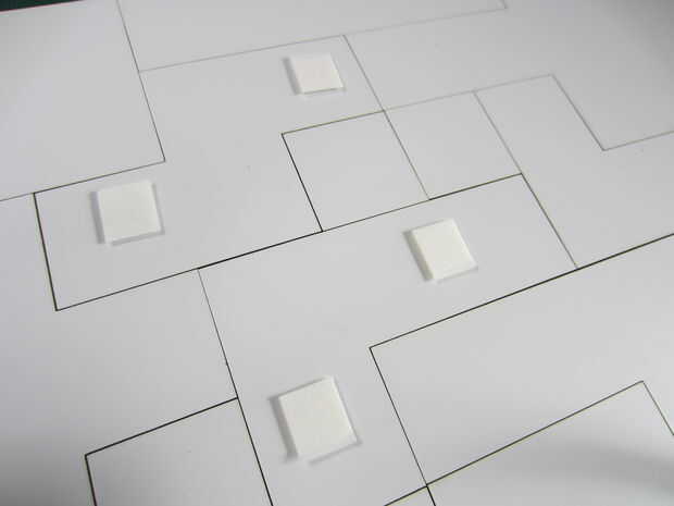 Cuando las partes llegan detrás (¡ yay!) todos que queda por hacer es agregar las pestañas adhesivas en la parte posterior de las piezas para arreglar en la pared y retire la película protectora de la parte delantera de acrílico. A continuación, las piezas se pueden arreglar en la pared sin embargo te gustaría recrear el juego!