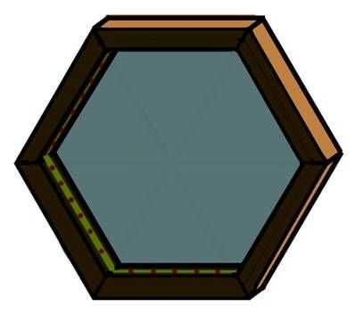 Ordenó a una empresa de vidrio para cortar un hexágono de mi espejo de cristal para envases de vidrio (sin excesivo color marrón o verde /). Ordenó un vidrio 5 mm más grande en diámetro que la parte exterior de la estructura para tener una buena superposición con los espejos laterales que pondré más adelante.