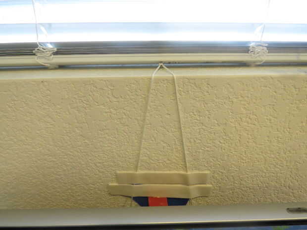 Había suspendido mi espejo de un clavo en el alféizar de la ventana, y una cadena conectada a dos tornillos en la parte posterior de la pantalla, como en la imagen anterior.