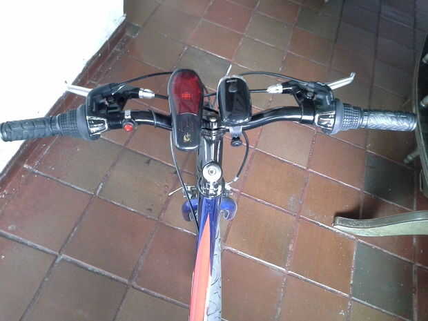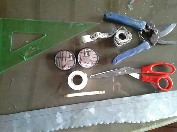 Tuve un par de 360 rotación angular adhesivo pequeños espejos que compré para mi anterior coche, que pensé que podría utilizar para mi moto. Entonces tuve que encontrar algo de material para crear el soporte para el espejo, así que encontré un viejo pedazo de lámina de Zinc (que se utiliza para cubiertas en barrios populares en Colombia) en mi tienda de herramientas caseras que pude cortar y doblar en una ronda de forma a crear un montaje de los espejos y pegarlo con cinta de doble cara para la barra del manejo de mi moto. Sugiero para usar una hoja de metal suave que se puede doblar, puede ser cobre, alluminum, etc..
