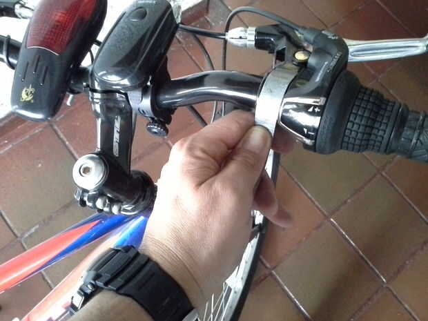 Moto Suzuki DR-650 2008 no viene con un reloj incorporado, y porque ya tengo un montón de aventuras recorriendo los instrumentos montados en el manillar, decidí montar un viejo reloj digital para el tallo de espejo izquierda. Puesto que ya tenía un r