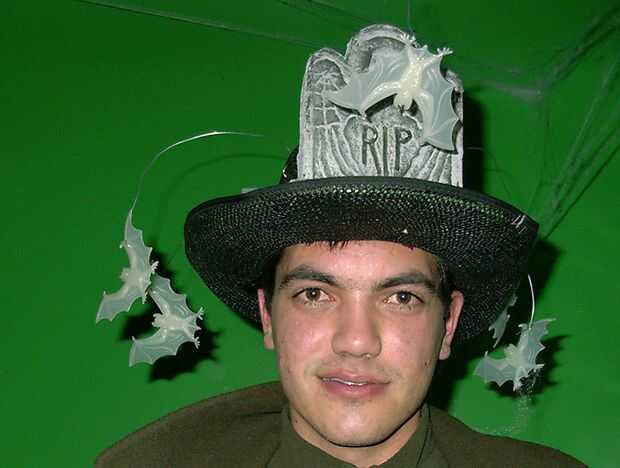 Hemos tenido un sombrero negro staw y algunos brillan en los oscuros murciélagos. Corté 3 pulgadas 10 piezas de alambre y solo había cableado a través de los murciélagos y luego enganchan en la paja del sombrero para que le cuelgan alrededor y añadir algo de interés.