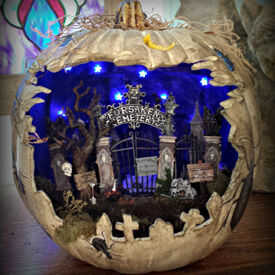 Tenía esta ciudad Spooky cementerio escenitas por Lexmark de hace unos años, sin posibilidad real para mostrarlo. Así que decidí hacer un cementerio espeluznante calabaza diorama con ella. Aquí es cómo resultó: