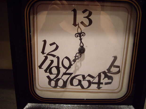 4. Pegue la mano de la hora en el reloj con cola blanca. Pongo minas en 13:00.