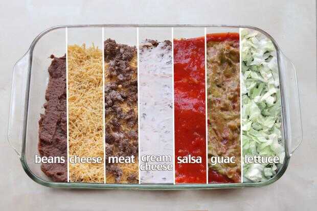 esta es mi versión de las siete capas. Dejar de lado la capa de cebollas verdes y hacer otras cosas para reducir la cantidad de cebolla y ajo en esta inmersión para mi maridito alérgica. Por favor, libre ajustar esta receta para adaptarse a su gusto
