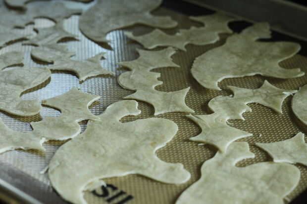 Como cortar cada forma, lugar que sobre una estera de silpat había forrado bandeja para fácil limpieza, o puede utilizar papel de pergamino.