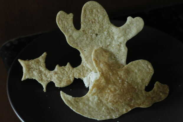 Espero a probar este convite de Halloween en tu fiesta de Halloween. Puede utilizar su imaginación y un cuchillo para cortar otras formas, como lápidas o buhos en árboles para hacer un patio de la tumba misterioso en su dip de 7 capas!