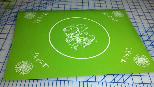 Una vez cortadas, comienza el proceso de escarda. Boda es el acto de quitar vinilo. Cualquier vinilo retirado permitirá el arenado de quitar el respaldo espejo que permite luz a través. En los cuadros verdes y blancos del vinilo arriba, puedes ver mi herramienta escarda que es simplemente una elección dental y nada blanco ha escardados hacia fuera.