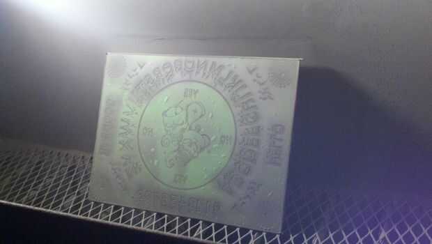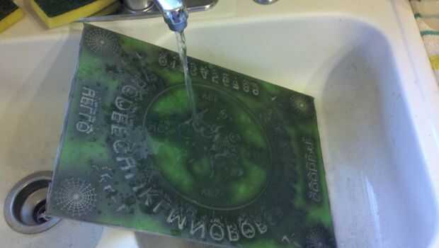 Después de que el espejo es arenado va directo a mi fregadero de la cocina para el retiro del vinilo. Utilizo como caliente como puedo reposar agua y dejarlo a remojo durante unos 5 minutos. La cinta adhesiva y transferencia caerá literalmente al espejo. En cuanto a la remoción de vinilo, a veces quitar el vinilo y algunas veces sólo eliminar las porciones más grandes de vinilo. Todavía tengo que ver una diferencia en la remoción de todos o ninguno del vinilo en el producto final.