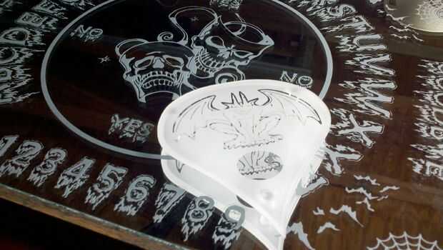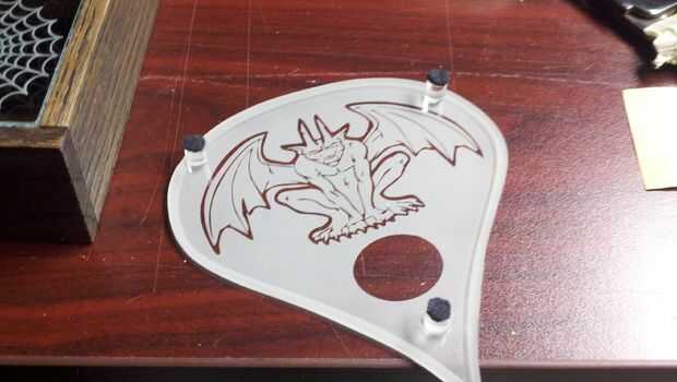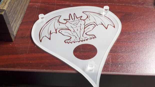 Después del corte y desmalezado el vinilo aplicar la obra de arte a un lado y una lágrima en forma de pieza de vinilo ligeramente más pequeño que el tamaño del acrílico por lo que hay un borde claro alrededor de la gota del rasgón. Chorro de arena la plancha entera incluyendo los bordes que redondean apagado un poco.