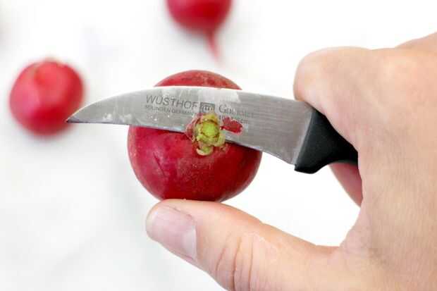 Luego use un cuchillo sincronización para eliminar al final de los verdes y la punta.