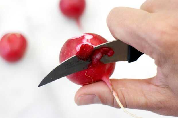 Elegir la más redonda, más ojos rábanos tamaño del racimo.