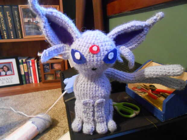 Terminar y tejer en los extremos. Puedes poner una pequeña cantidad de relleno dentro de los pies. Coser o caliente cola pierna al lado izquierdo del cuerpo.