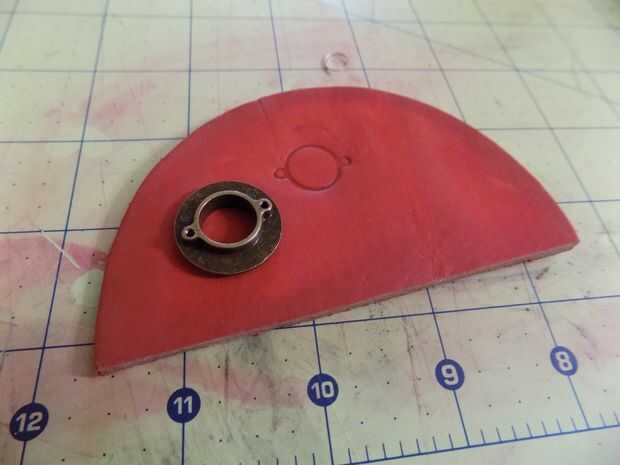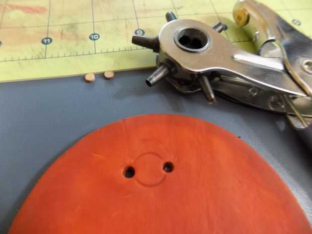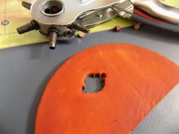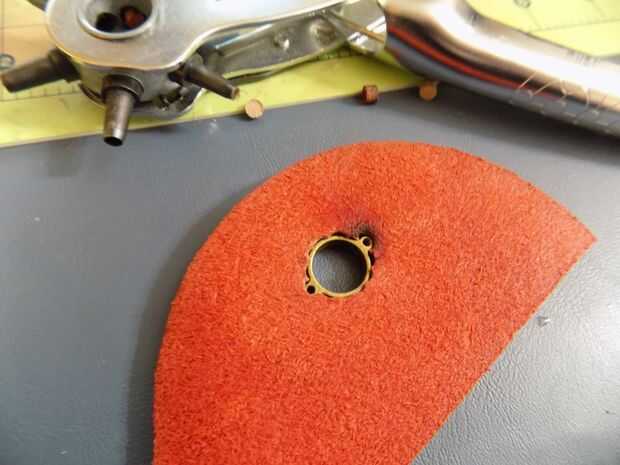 Presione el lado del ojal con los agujeros roscados en el cuero para crear una huella.