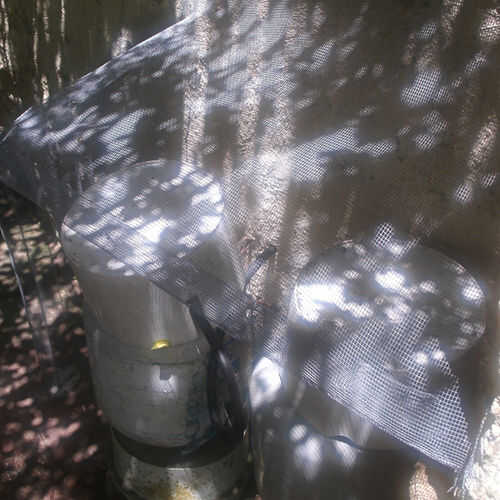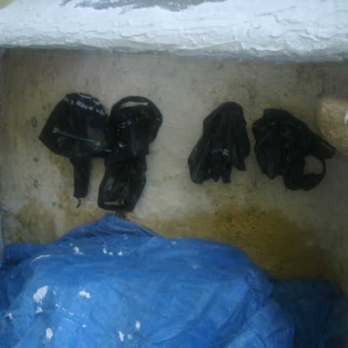 Antes de entrar en el enlucido, cubrí todos los mangueras de línea expuestos de la estufa y cadena de amarre con bolsas de plástico para protegerlos.