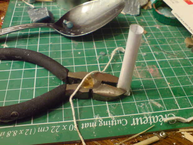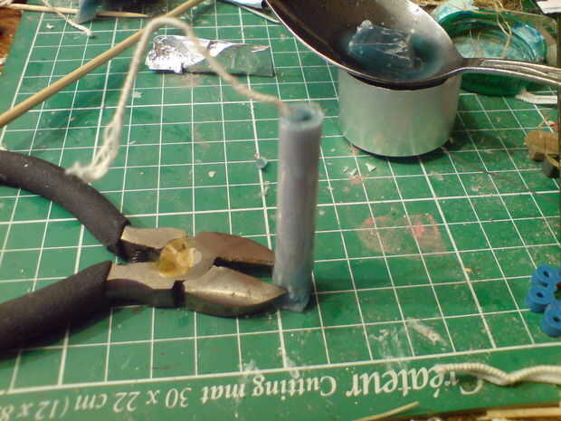 Colocar el molde vertical y puesto y mecha en él (una delgada enrollada pedazo de tejido, un filamento de la cadena... que cosas de inflamables)