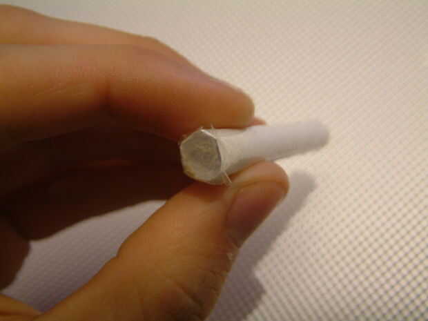 Inserte la vela en el cigarrillo y la cubierta con el tabaco. Hacer!