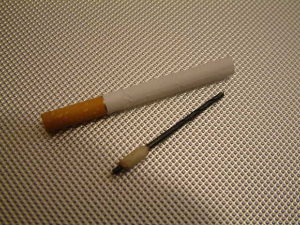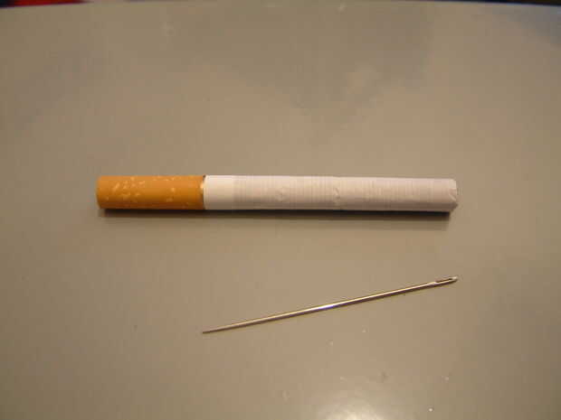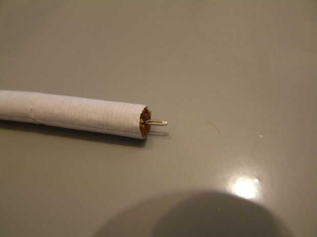 El escalpelo o la aguja simplemente puede ser empujada en el cigarrillo teniendo cuidado de no perforar el papel. Una hoja más ancha o la broca algunas eliminación de tabaco puede requerir.