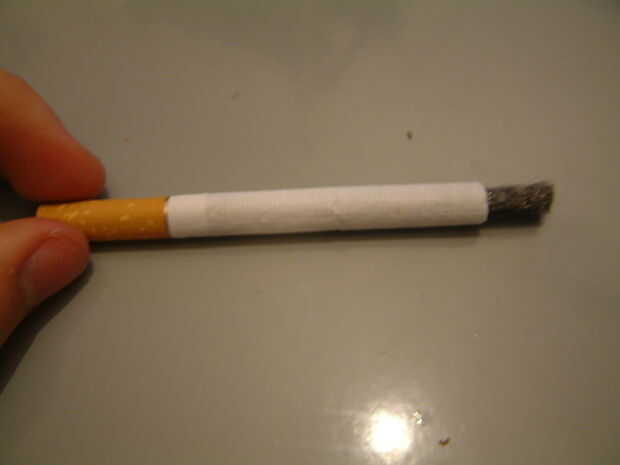 La lana de alambre y tiró para coger una chispa de fuego alumbrado, o colocada en flojo, en el cigarrillo y seguidamente el encendido para producir un efecto de tipo espumoso y caliente llama para quemar a través de las cuerdas Gestapo molestos.