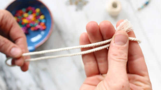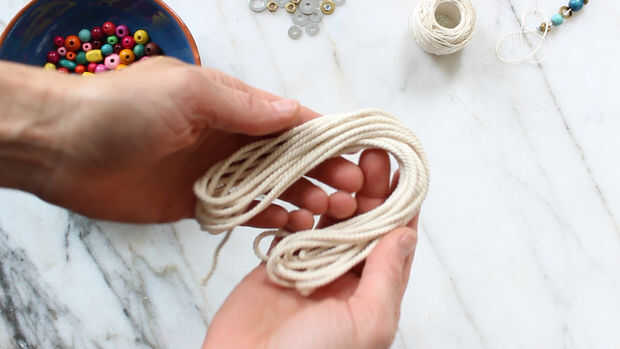 Figura cuánto tiempo desea que la parte de la cuerda de la borla, luego duplicar ese número. Luego use esa longitud y hacia adelante y hacia atrás del lazo 10 - 15 veces. Por ejemplo, quiero mi borla que 4 pulgadas de largo. Tire una longitud de 8 pulgadas de la cuerda, luego sin cortar el hacer cuerda 10-15 longitudes de más de 8 pulgadas. Se muestra en la segunda foto.