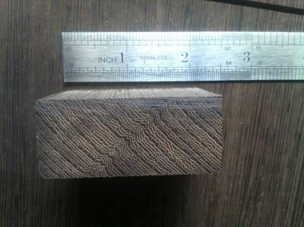 Wenge es similar al roble para trabajar con. Es más difícil, un poco aceitoso y se rasga fácilmente. Y es caro, sobre $19 por pie tablar.