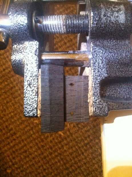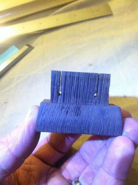 Sólo tener en cuenta: al hacer cuñas como este, tu cuña siempre tiene que correr 90° fuera de la la veta de la madera MORTISED, no la espiga. Si ejecuta una cuña paralela puede partirse la mortaja. Así que en este caso, cuando conduzco las cuñas se flexión las dos piezas exteriores de wengue hacia la veta de la tapa del álamo.