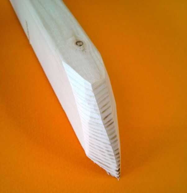 Eligió una pieza de madera gruesa de 3/4" y utiliza una sierra para cortar en diamantes alargados.
