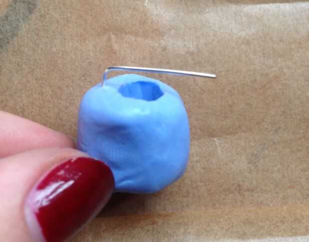 Pegan en la parte superior de su molde, asegurándose de que no perforar a través en el agujero que ha dejado su pico, que es donde la resina se va a ir. El alambre debe cruzar por encima este 'agujero' en su molde.