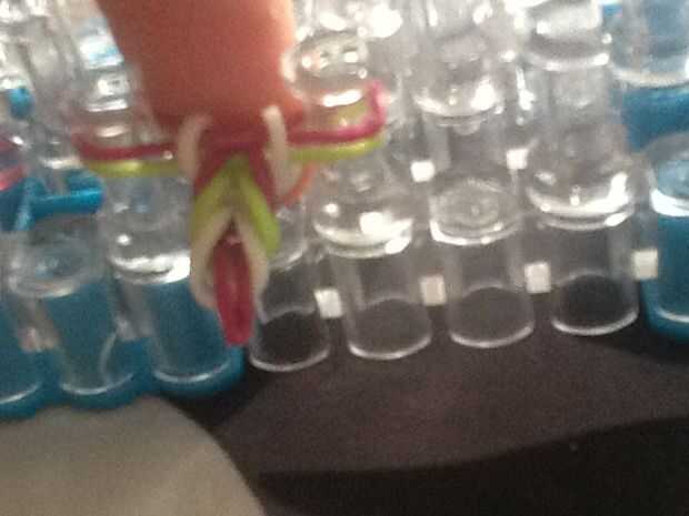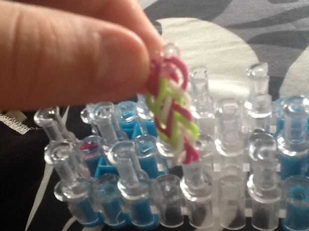 Paso 1: materiales: Necesita...Un kit de telar del arco irisBandas de gomaGancho telar de arco irisClip C o S clip :)Paso 2: Hacer la pulsera: Tomar una banda elástica y tuérzalo alrededor de dos clavijas que telar.Paso 3: Una vez que tengas la goma