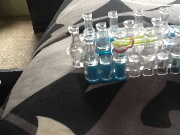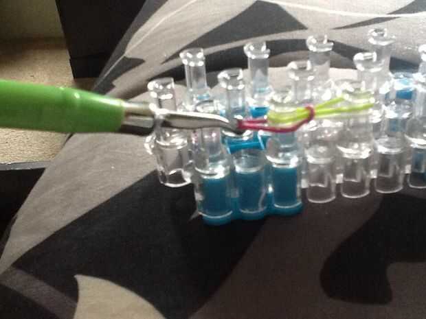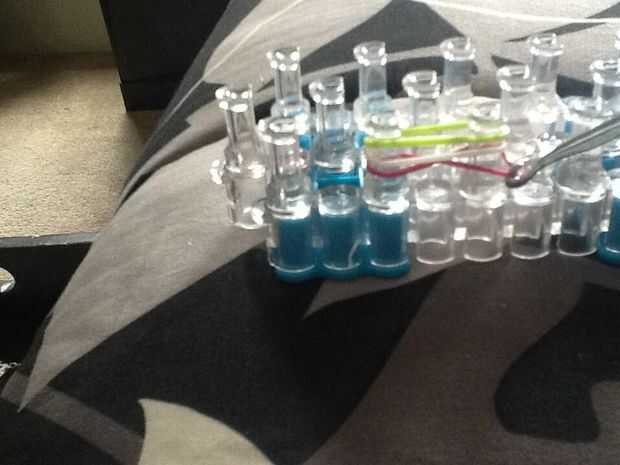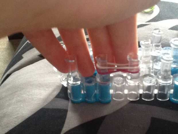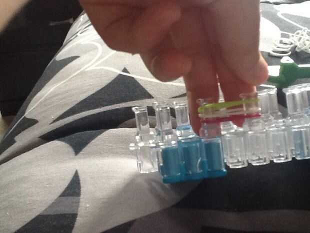 Paso 1: materiales: Necesita...Un kit de telar del arco irisBandas de gomaGancho telar de arco irisClip C o S clip :)Paso 2: Hacer la pulsera: Tomar una banda elástica y tuérzalo alrededor de dos clavijas que telar.Paso 3: Una vez que tengas la goma