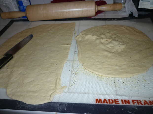 Se puede hacer una pizza grande o dos pizzas de tamaño 12 en torta como lo hice.