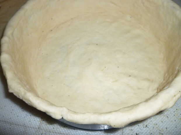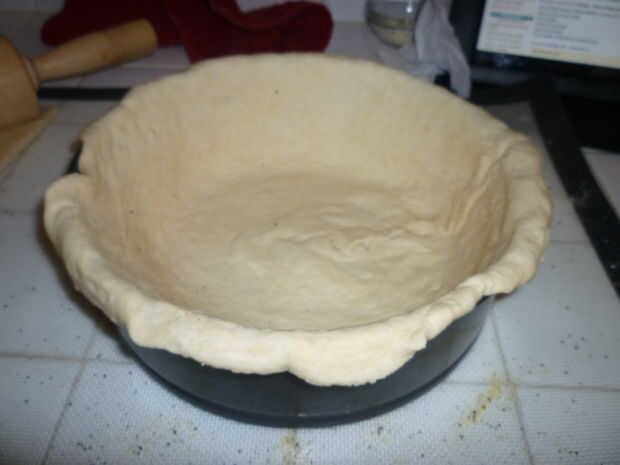 Estirar la masa, cortarla y colocarla en un molde para pasteles engrasada. Estiran para que quepa.