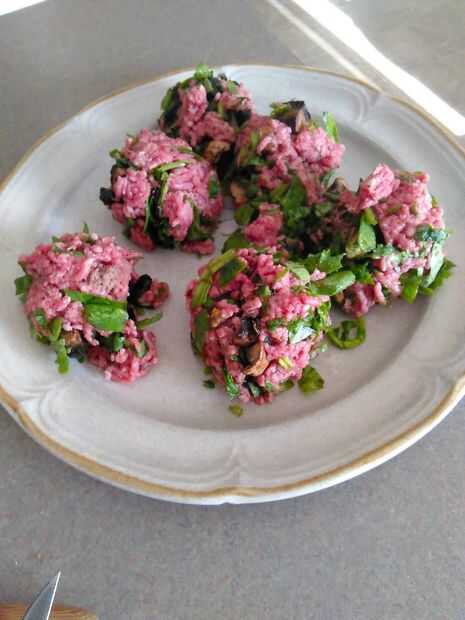 3. Mezclar la carne, condimentos y verduras juntos y bolas de tamaño medio de forma