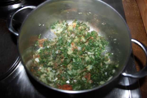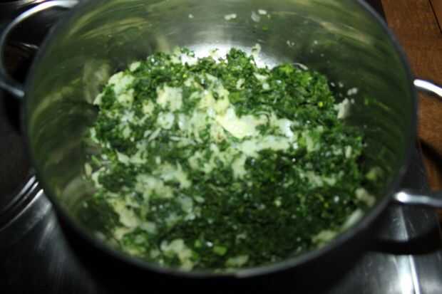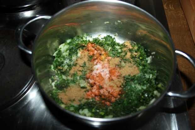 Calentar un poco aceite, genio el onions.when esto es cocinar agregar la espinaca y cocinar unos minutos. A continuación añadir todos los ingredientes y sal al gusto. No sobre cocine la espinaca o la cubierta cuando cooking.it no tarda mucho en cocinar esto.