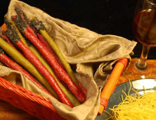 Espinacas, ajo y remolacha/cebolla Grissini sables