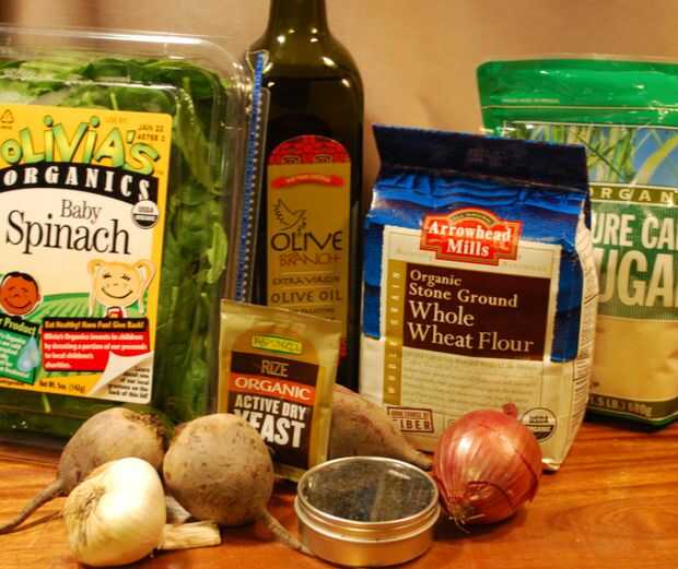 Espinacas, ajo y remolacha/cebolla Grissini sables (1 / 4 paso)