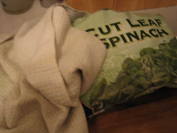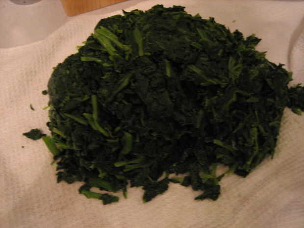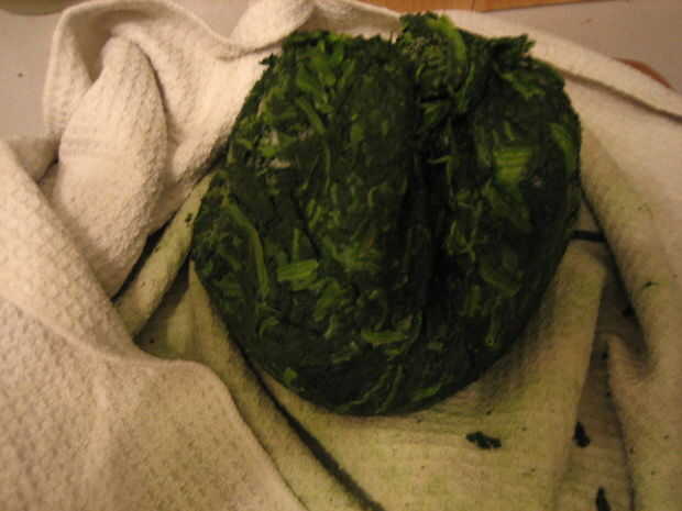 8. Coloque la espinaca en una toalla de cocina y exprimir para quitar el exceso de líquido