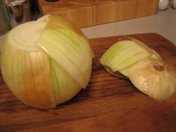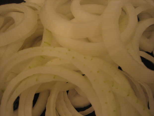 4. quitar cebollas de pan y colóquela en el recipiente grande