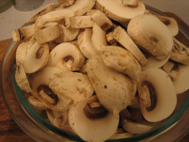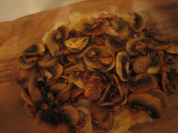 6. Coloque las setas en la sartén y la tapa. Cocinar hasta que quede ligeramente dorada (unos 10 minutos)
