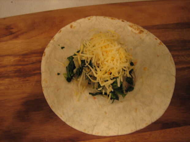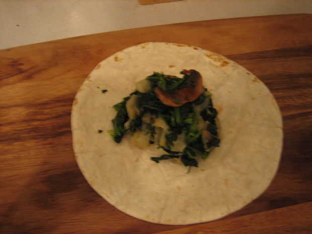 3. Añadir unas 3 cucharadas de la mezcla de seta y espinacas